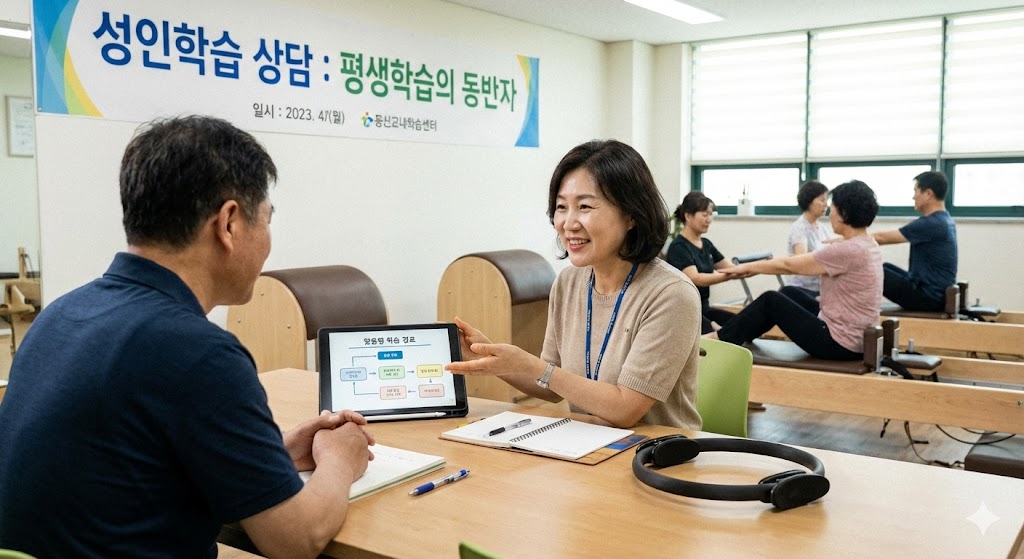 평생교육 현장은 다양하지만, 성인학습자들은 종종 학습에 대한 두려움과 낯섦을 느낀다. 이에 상담은 개인의 특성과 경험을 분석해 가장 적합한 학습경로를 안내한다. 권두승 외 연구(2002)에 따르면 성인은 뚜렷한 목표의식, 풍부한 경험, 안정된 지능구조, 선택적 학습 참여, 단기기억 중심의 학습 특성을 지닌다. 이러한 특성은 아동의 ‘가르침’이 아닌 성인의 ‘배움’을 기반으로 한다.